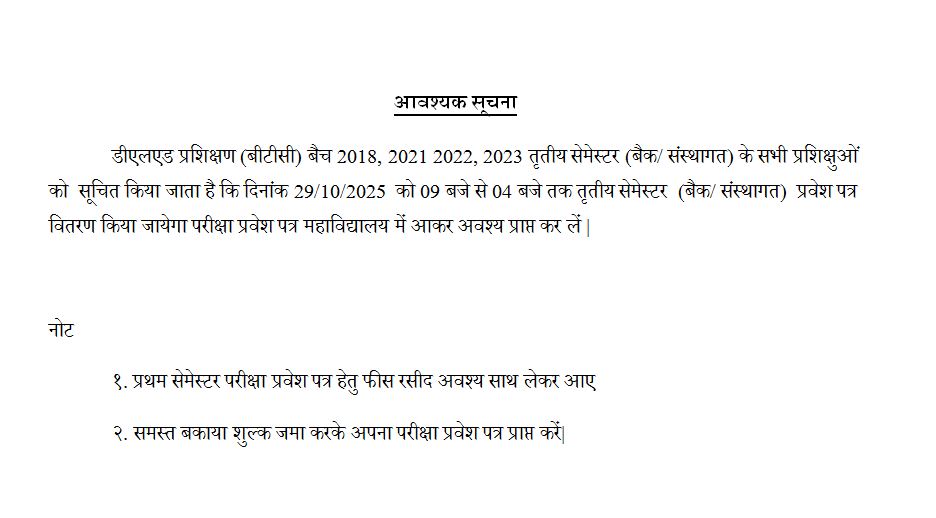 डी. एल. एड. (बी. टी. सी.) 2025 प्रवेश नोटिस